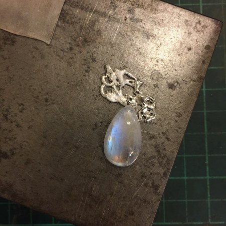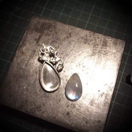 底座焊好之後進行硫化處理,讓線條紋路更明顯,接著就是把寶石鑲上去了。