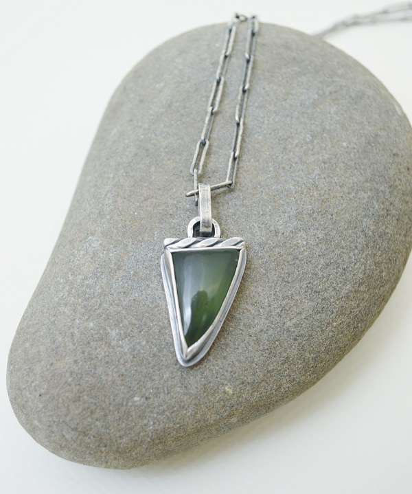 Green Jade‧Leaf‧Handmade Sterling Silver Necklace‧no3_1_s