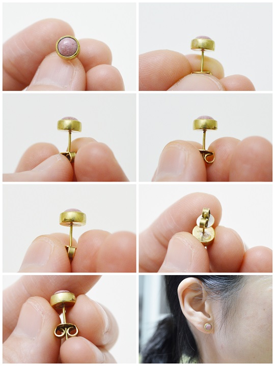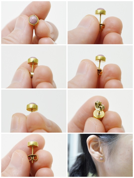 [簡單小石系列-薔薇輝石(玫瑰石)‧圓形‧黃銅耳釘2 Simple small stone-Round Rhodonite‧Brass Single Stud Earrings2]