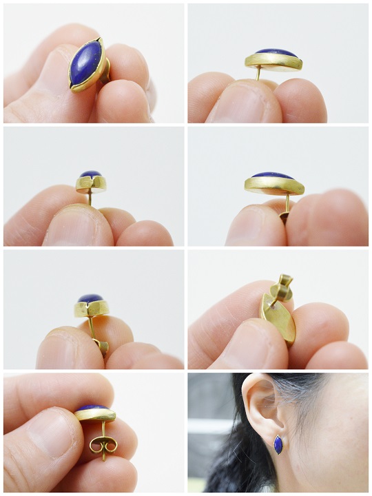 [簡單小石系列-青金石‧馬眼形‧黃銅耳釘 Simple small stone-marquise lapis lazuli‧Brass Single Stud Earrings]