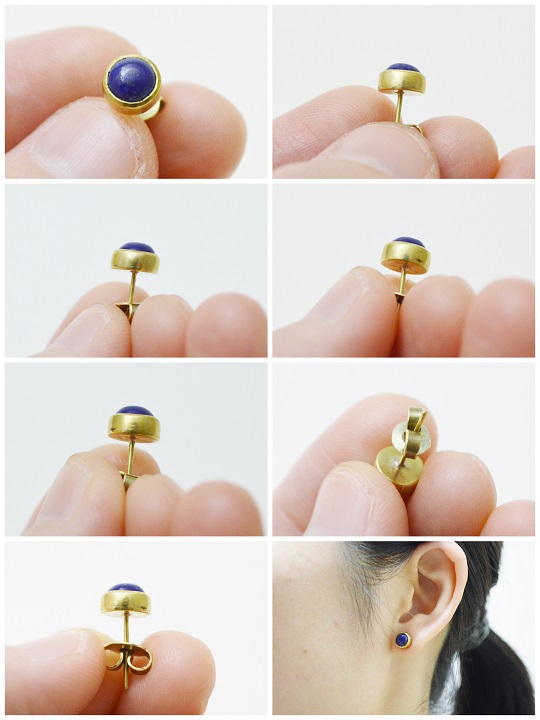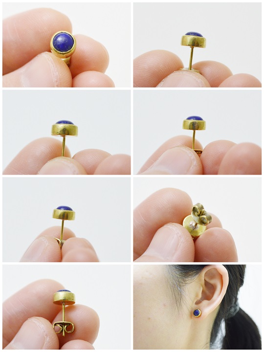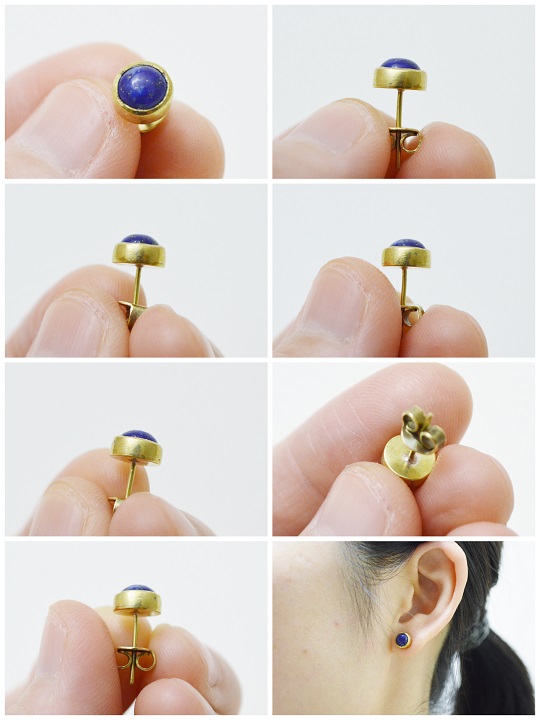 [簡單小石系列-青金石‧圓形‧黃銅耳釘3 Simple small stone-round lapis lazuli‧Brass Single Stud Earrings3]
