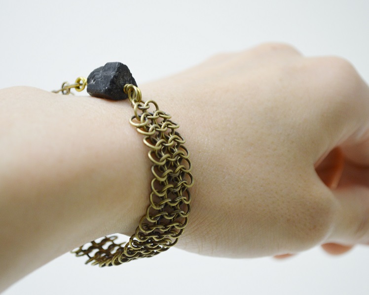 各種鍊型的製作一直是我蠻有興趣的一件事, 雖然要花很多時間, 以成本效益來說也不划算, 明明各種成鍊多的是。但是, 手作的總是會有稍微不一樣的味道, 而且, 有時候想搭配的樣式也買不到, 或者太貴。不過, 最大的原因還是喜歡製作鍊子, 哈哈 最近嘗試的這款鎖子甲串接方式的手鍊, 為了兼顧它的堅固性, 所以也有焊接。 看看那些黃銅小圈圈, 超過100個, 每個都要焊接起來, 真的沒辦法一口氣把它做好, 分了好幾天才完成, 真的是目前為止最費工的。