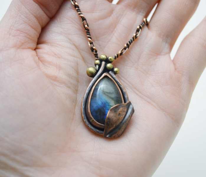 -手工硫化紅銅鍊 Handmade Oxidized Copper Chain , 拉長石 Labradorite, 硫化紅銅 Oxidized Copper, 硫化黃銅 Oxidized Brass