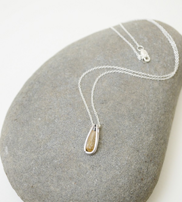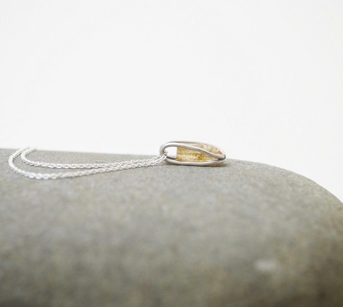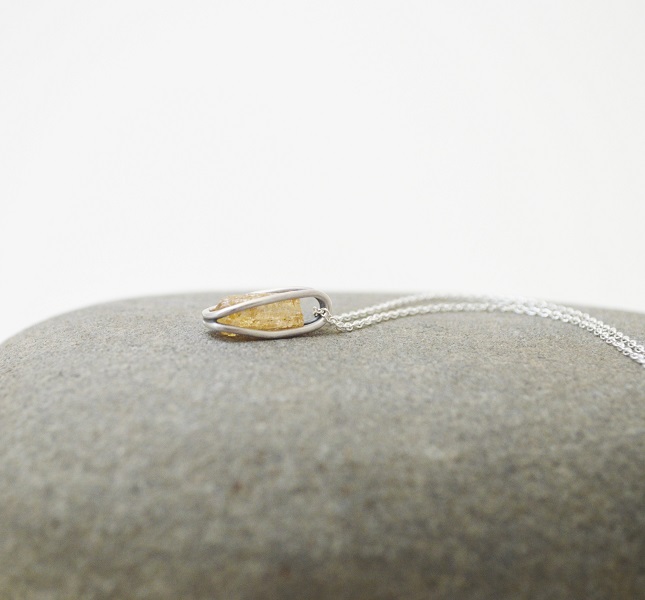 [原石系列-黃色拓帕石‧1‧純銀項鍊 Raw stone – Yellow Topaz‧1‧Silver Cable Chain Necklace]