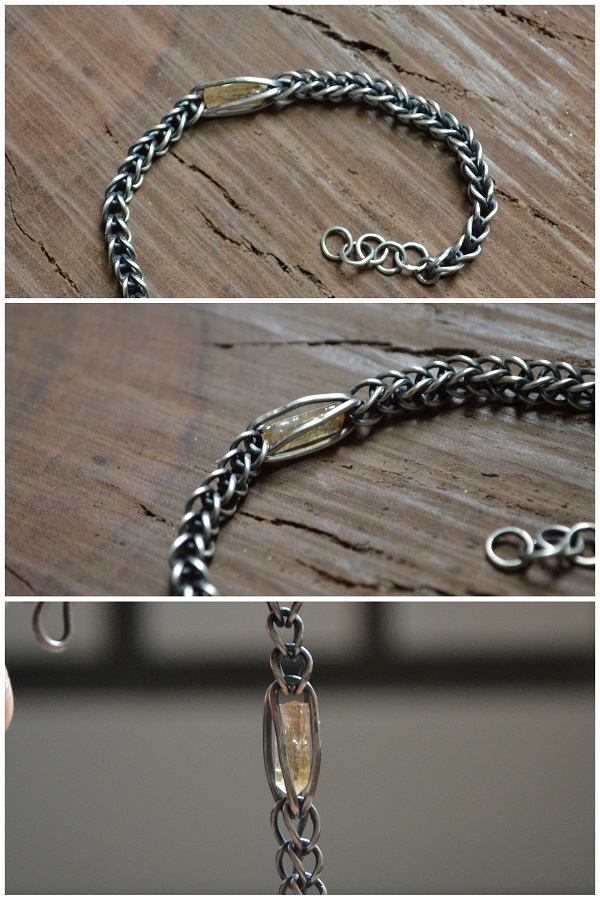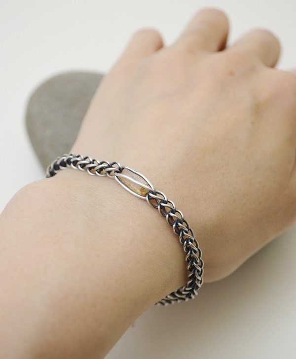 [原石系列-黃色拓帕石‧1‧硫化染黑純銀手鍊 Raw stone – Yellow Topaz‧1‧Oxidized Silver Bracelet]