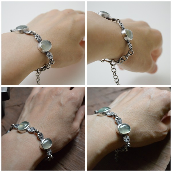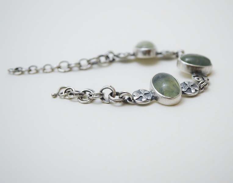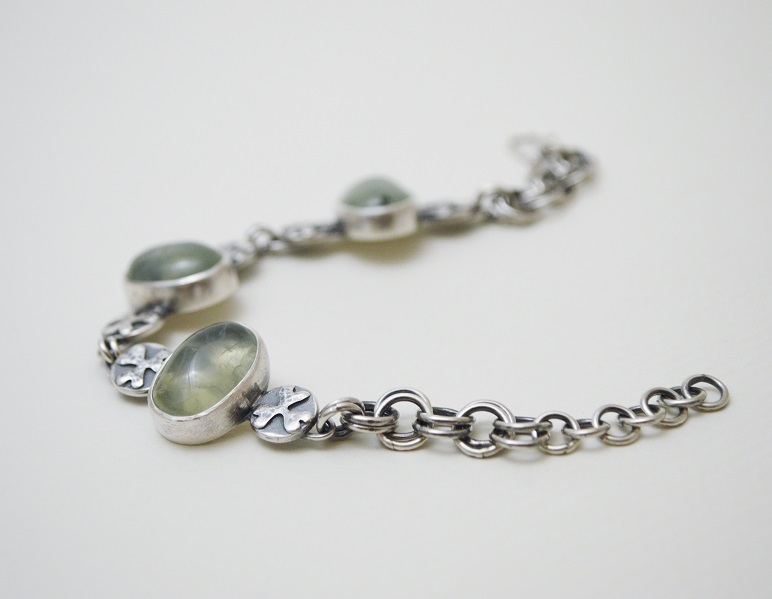 [幸運草-葡萄石‧復古風格硫化純銀手工鍊手鍊‧1 Clover – Prehnite‧Oxidized Silver Handmade Chain Vintage Style Bracelet‧1]
