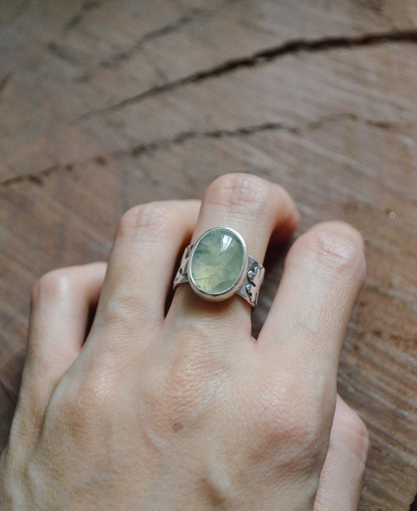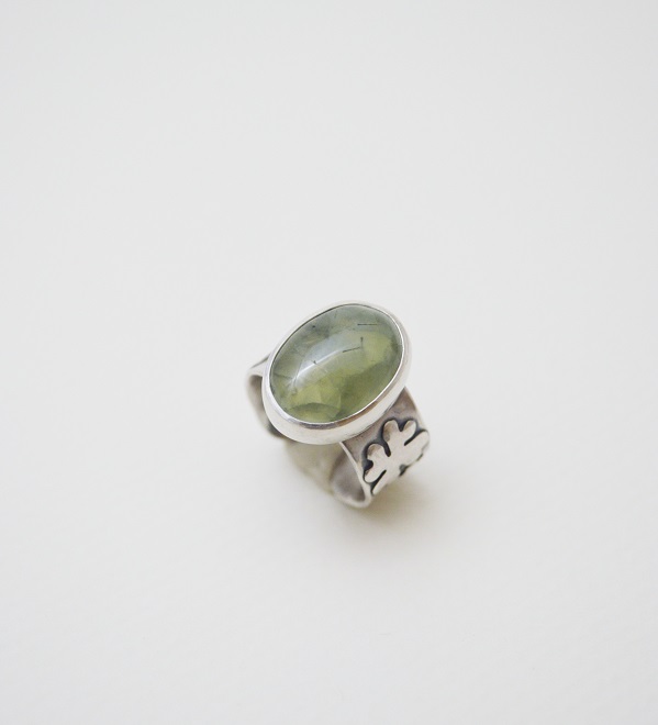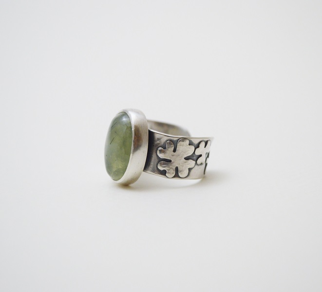 [幸運草-葡萄石‧復古風格硫化純銀寬版開放戒圍戒指‧1 Clover – Prehnite‧Oxidized Silver Vintage Style Wide Open Ring‧1]