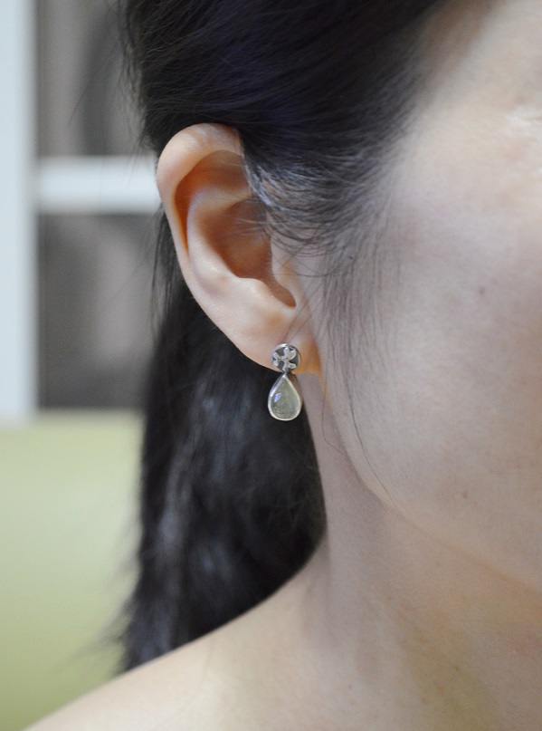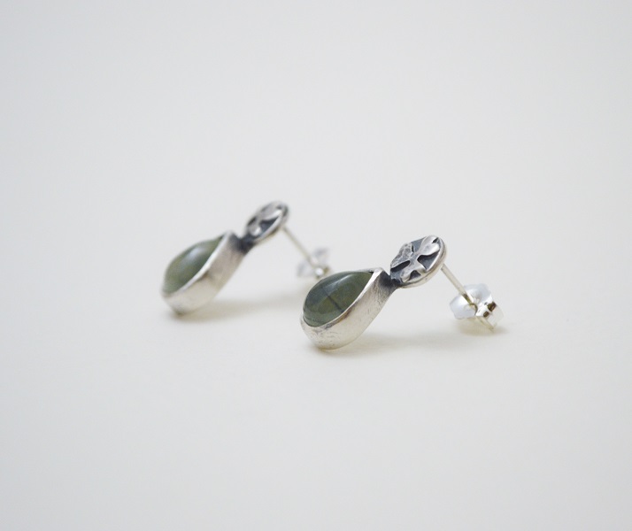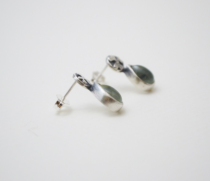 [幸運草-葡萄石‧復古風格硫化純銀耳釘(一對)‧1 Clover – Prehnite‧Oxidized Silver Vintage Style Ear Studs (pair)‧1]