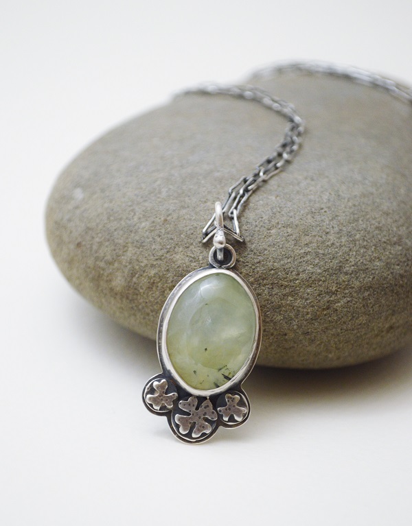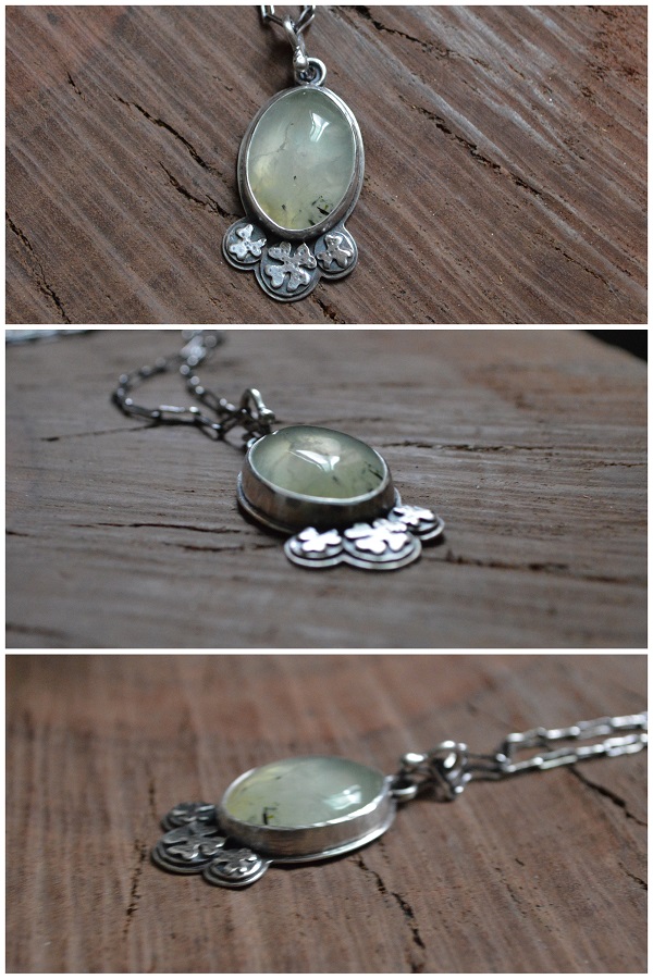 [幸運草-葡萄石‧復古風格硫化純銀手工鍊項鍊‧1 Clover – Prehnite‧Oxidized Silver Handmade Chain Vintage Style Necklace‧1]