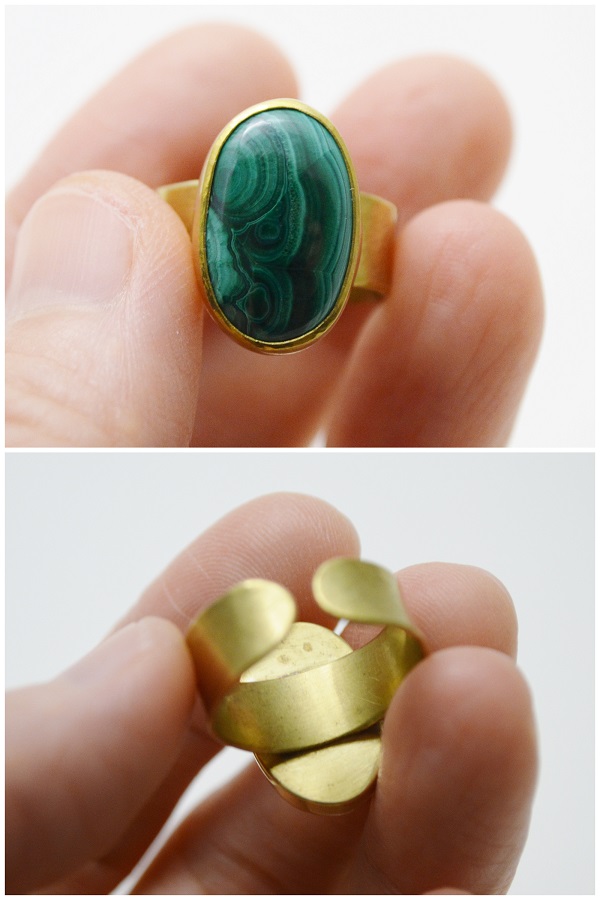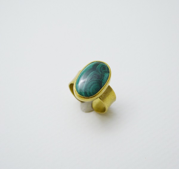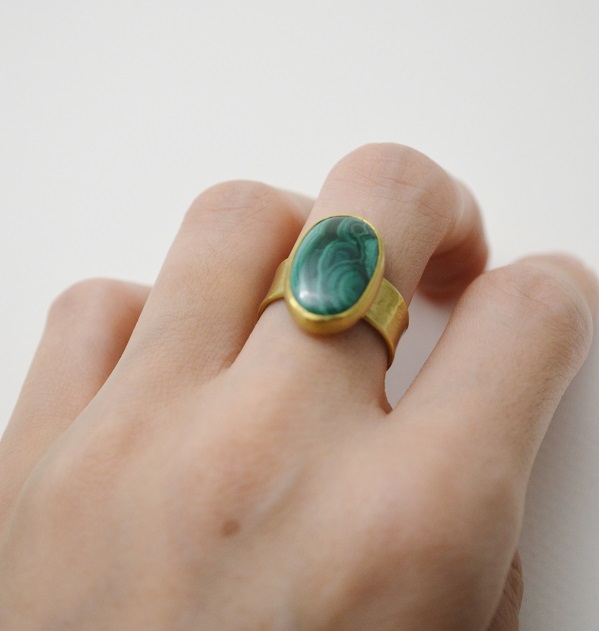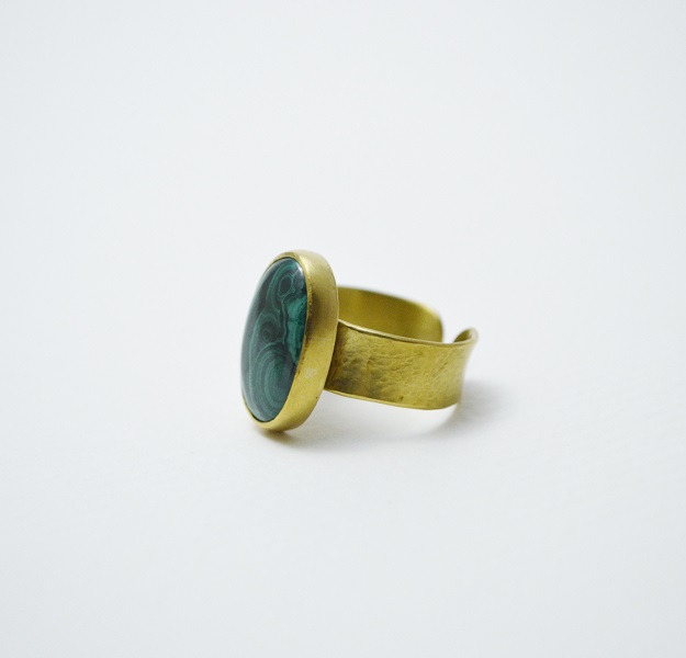 [簡單系列-孔雀石‧黃銅‧開放戒圍戒指 Simple Series-Malachite‧Brass Open Ring]