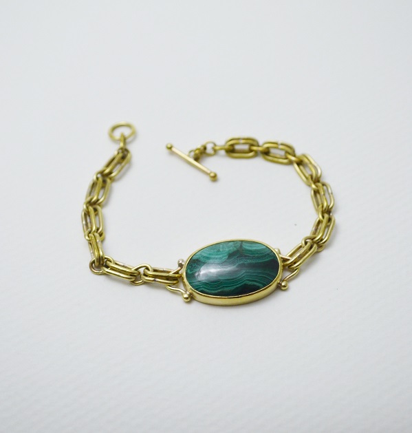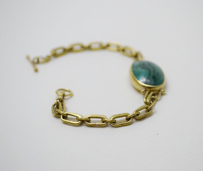 [簡單系列-孔雀石‧手工黃銅鍊手鍊 Simple Series-Malachite‧Handmade Brass Chain Bracelet]