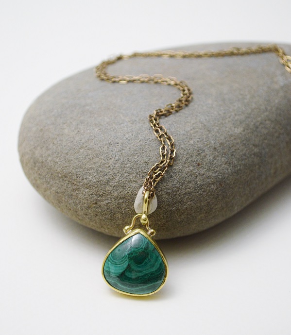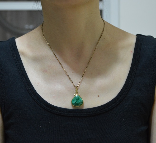 [簡單系列-孔雀石‧硫化黃銅鍊項鍊 Simple Series-Malachite‧Oxidied Brass Chain Necklace]