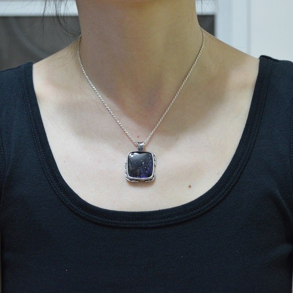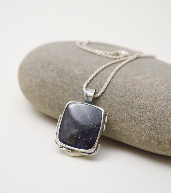 [段落系列-深藍色堇青太陽石‧硫化純銀墜項鍊 Section‧Deep Blue Iolite-Sunstone‧Oxidized Silver Pendant Necklace]