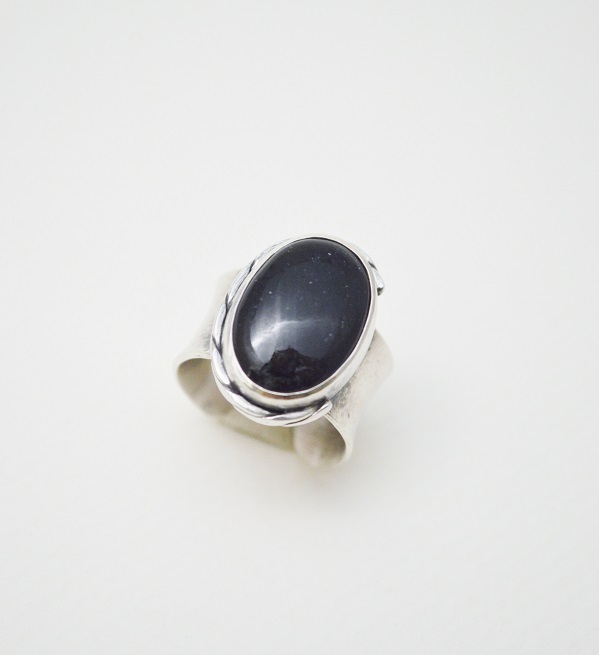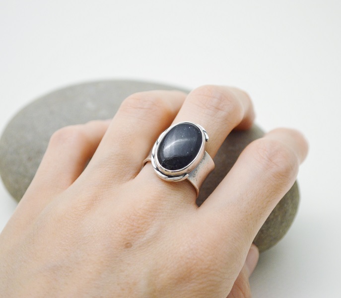 [段落系列-深藍色堇青太陽石‧硫化純銀寬版開放戒圍戒指 Section‧Deep Blue Iolite-Sunstone‧Oxidized Silver Wide Open Ring]