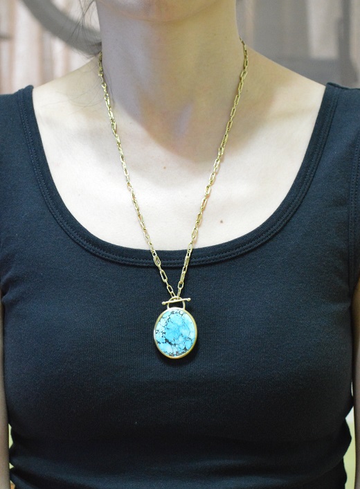 -黃銅 brass, 綠松石(可能有染色) Turquoise (may be stained), 手工黃銅鍊 Handmade Brass Chain