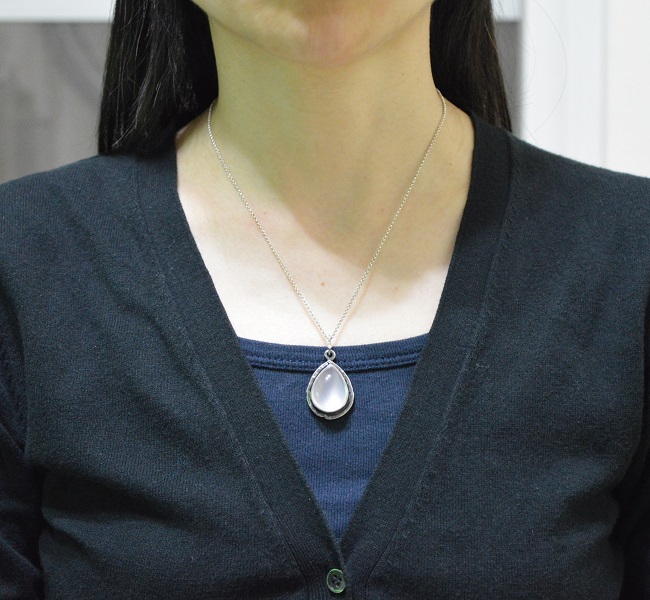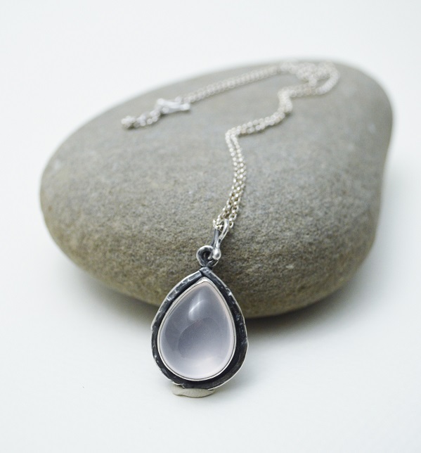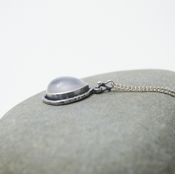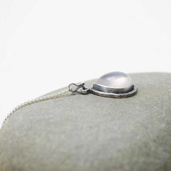 -硫化純銀墜 Oxidized Silver Pendant, 純銀鍊 Silver Chain, 粉水晶 Rose Quartz