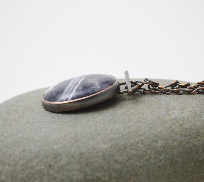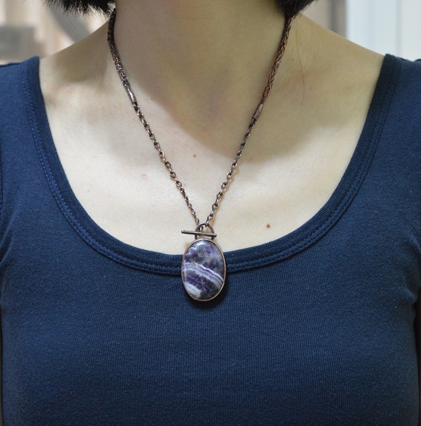 -染黑處理紅銅 Oxidized copper, 雪佛龍(虎牙)紫水晶 Chevron Amethyst, 手工編織紅銅鍊 + 麻花狀手工鍊 Handmade Copper Chain