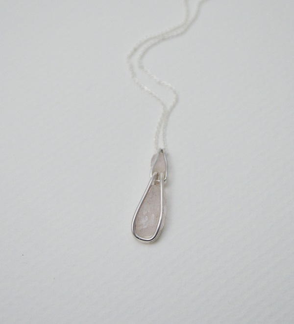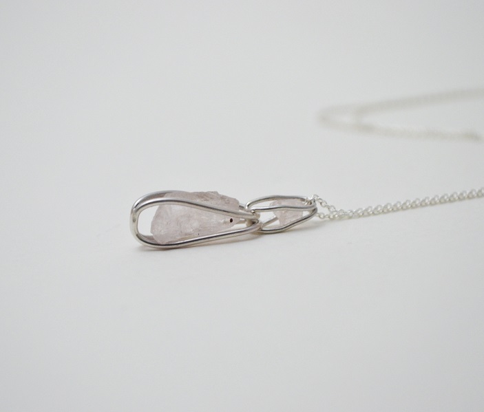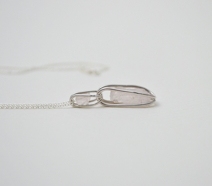 [原石系列-摩根石‧純銀鍊項鍊 Raw stone – Morganite‧ Silver cable Chain Necklace]