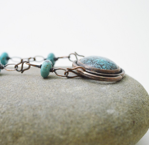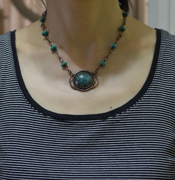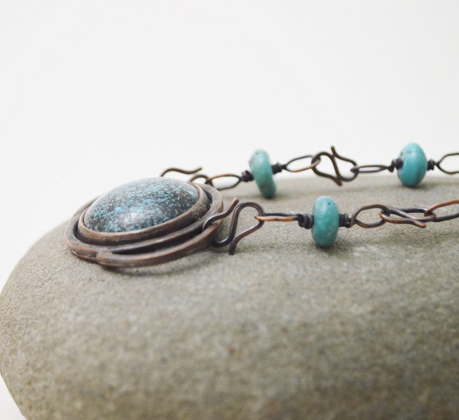 -硫化紅銅 Oxidized Copper, 綠松石 Turquoise, 綠松石珠 Turquoise Bead, 手工硫化紅銅鍊 Handmade Oxidized Copper Chain