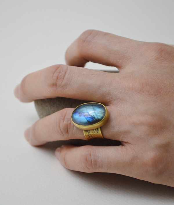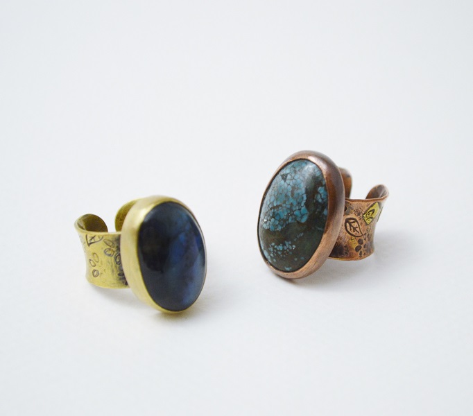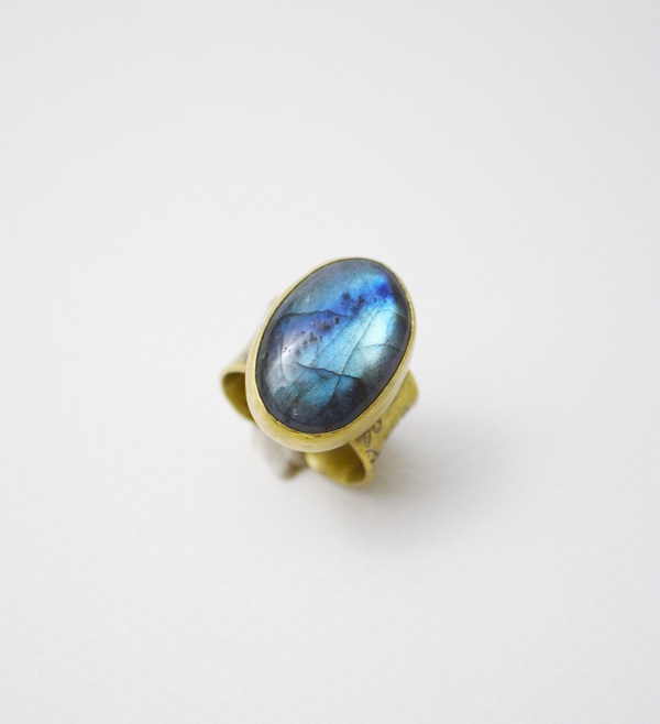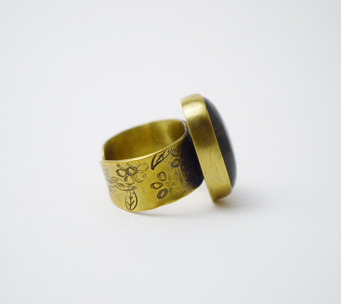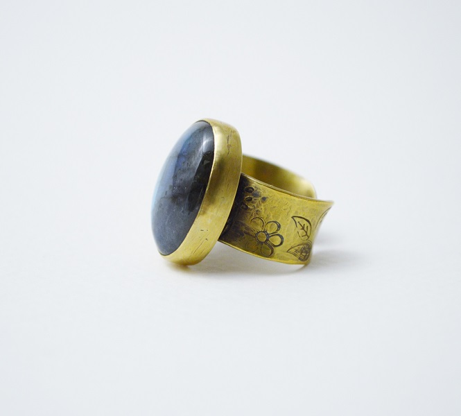 [塗鴉系列-4號‧黃銅‧拉長石‧硫化處理‧開放戒圍戒指 Graffiti-no.4‧Oxidized Brass Labradorite‧Open Wide Ring]