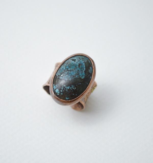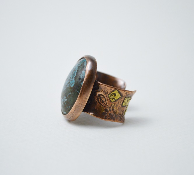 [塗鴉系列-4號‧紅銅‧綠松石(土耳其石)‧硫化處理‧開放戒圍戒指 Graffiti-no.4‧Oxidized Copper Turquoise‧Open Wide Ring]