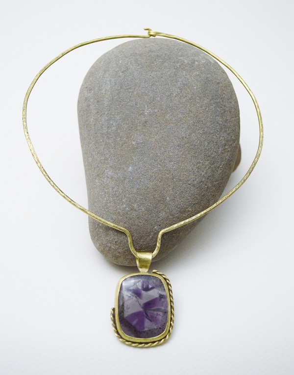 [段落系列-達碧茲(查皮丘)紫水晶墜‧黃銅手工頸環項鍊 Section‧Trapiche Amethyst-Brass Pendant Neck Ring]