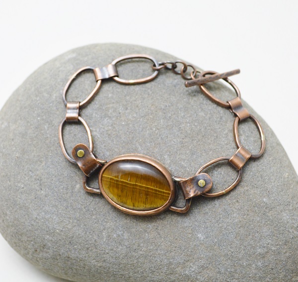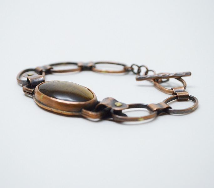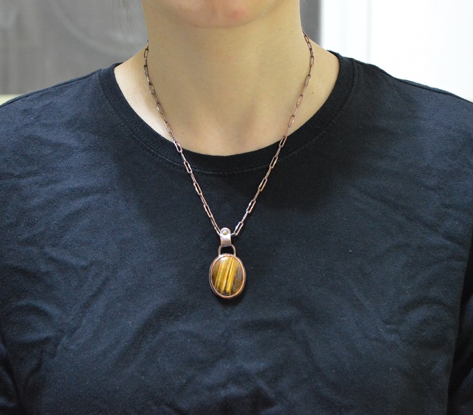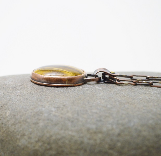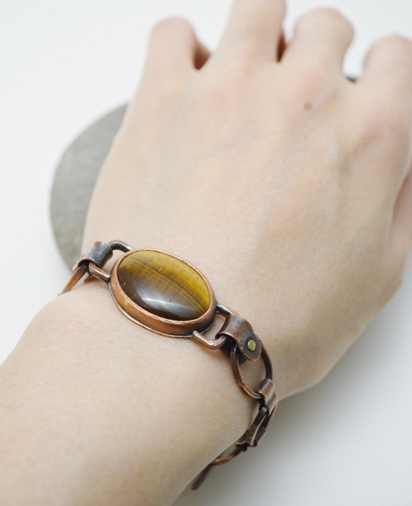 – 硫化紅銅 Oxidized Copper, 虎眼石 Tiger’s Eye, 手工硫化紅銅鍊 Handmade Oxidized Copper Chain, 黃銅鉚釘 Brass Rivet