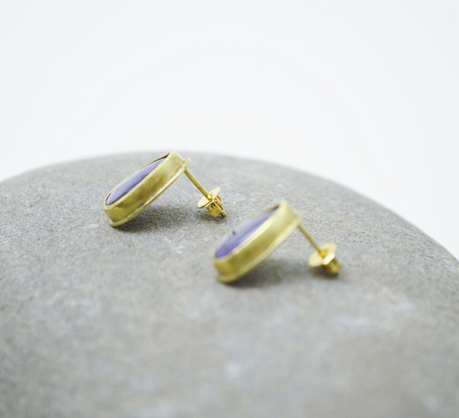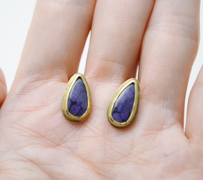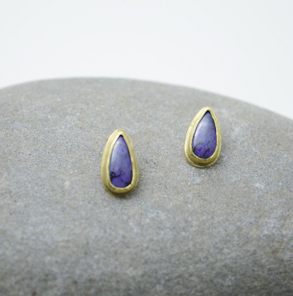 [簡單系列- 舒俱徠石(杉石)‧黃銅耳釘(一對) Simple Series-Sugilite Brass Stud Earring (pair)]