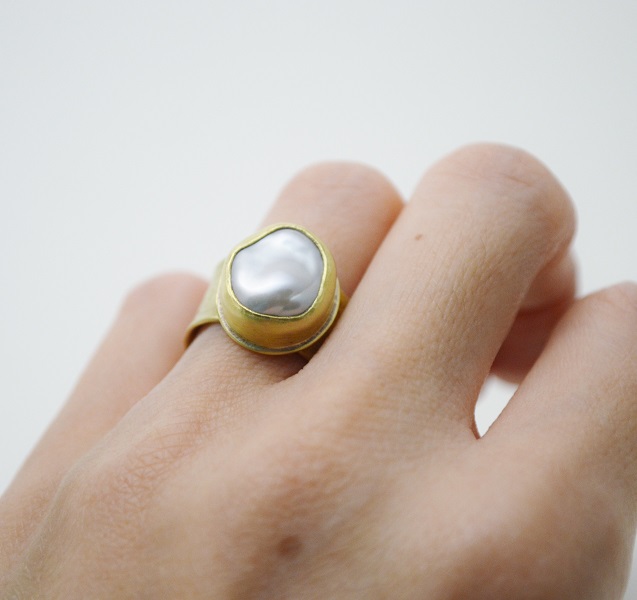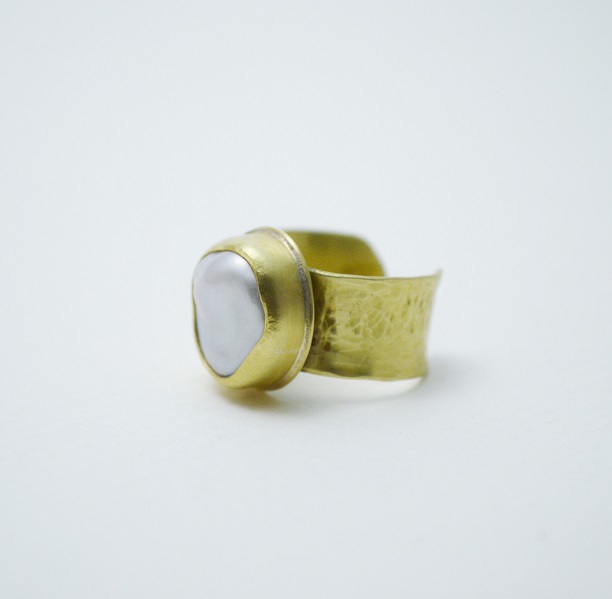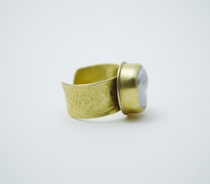 [簡單系列-銀灰色巴洛克珍珠‧黃銅開放式寬版戒 Simple Series-Silver Gray Baroque Pearl‧Wide Brass Open Ring]