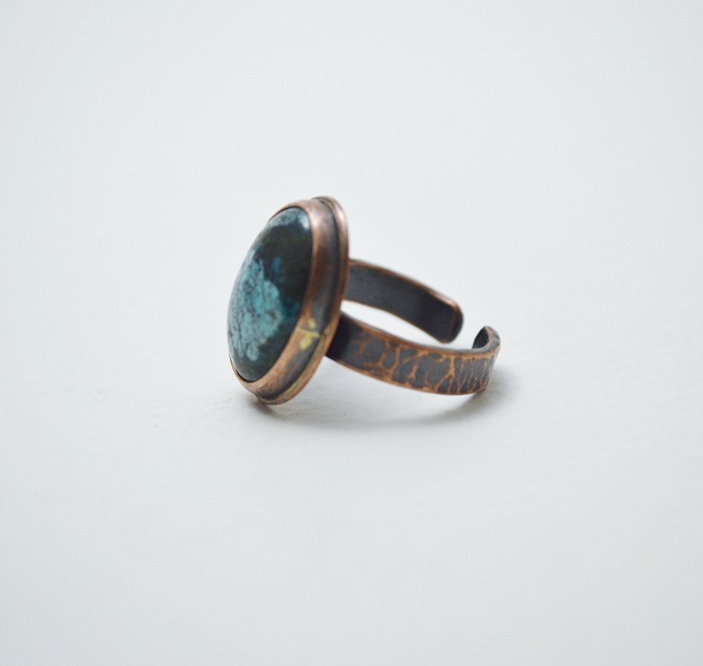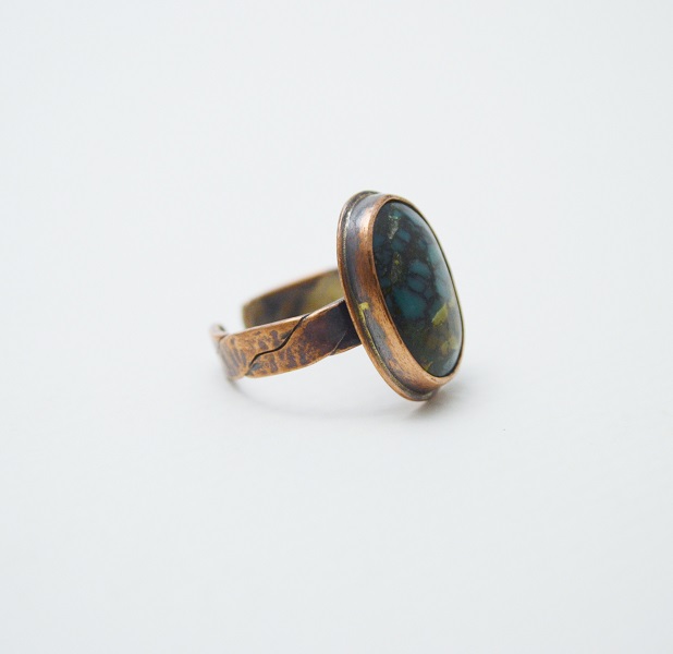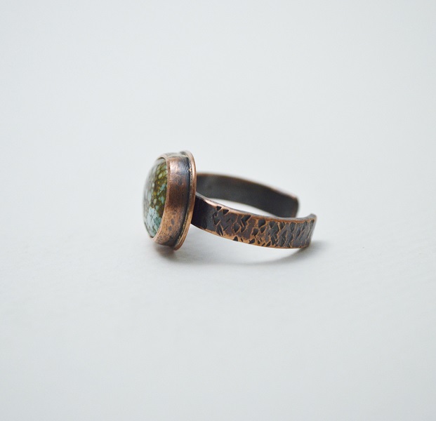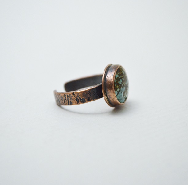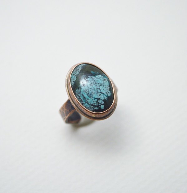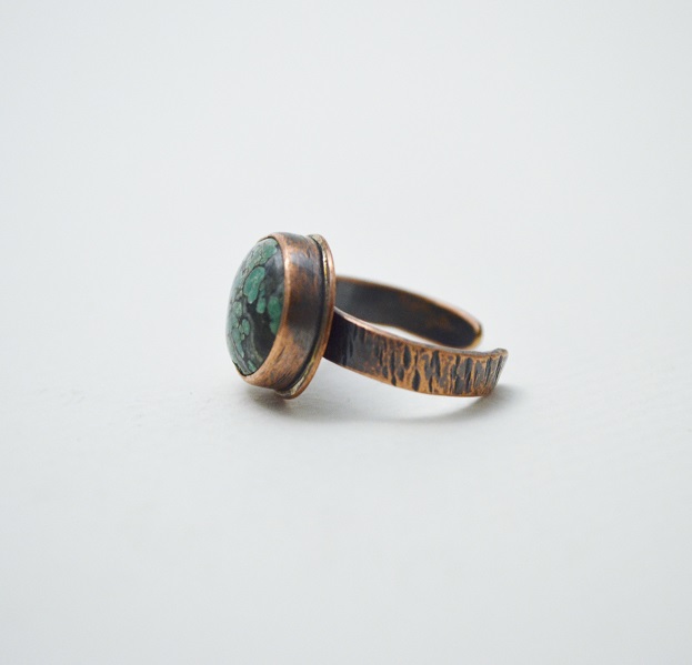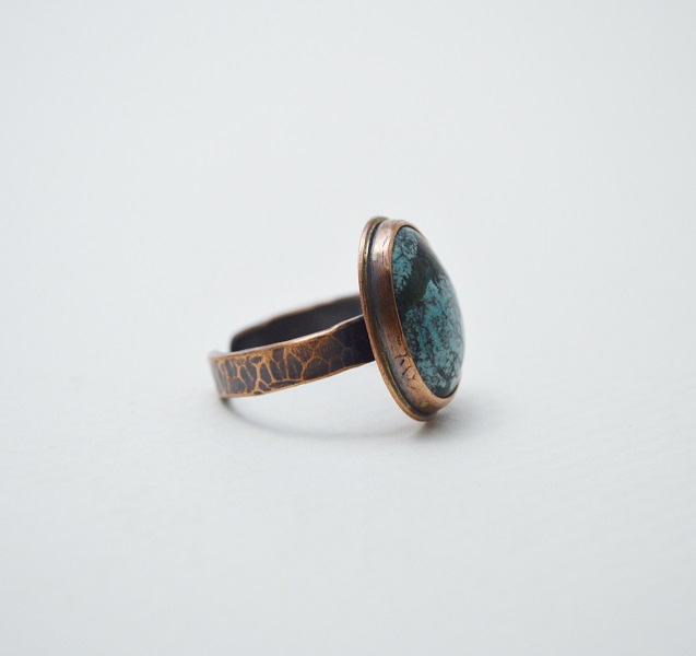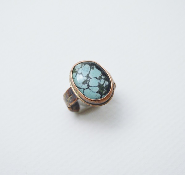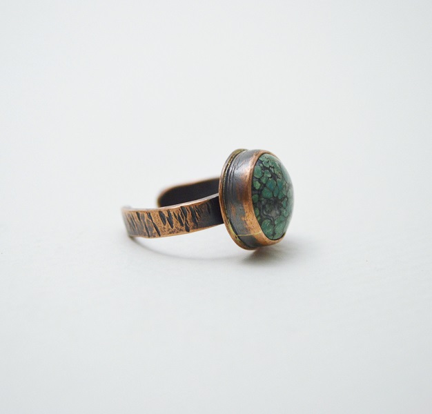 [簡單系列-綠松石(土耳其石)‧硫化鍛敲紅銅開放戒圍戒指‧no 4 Simple Series-Turquoise‧Oxidized forged Copper Open Ring‧no 4]
