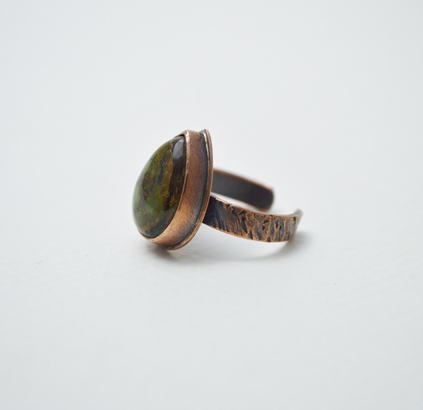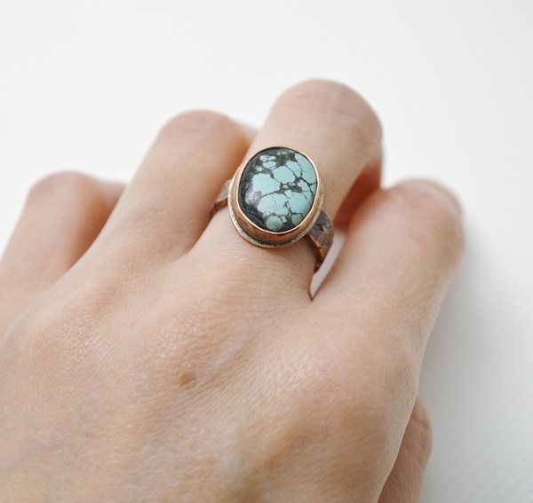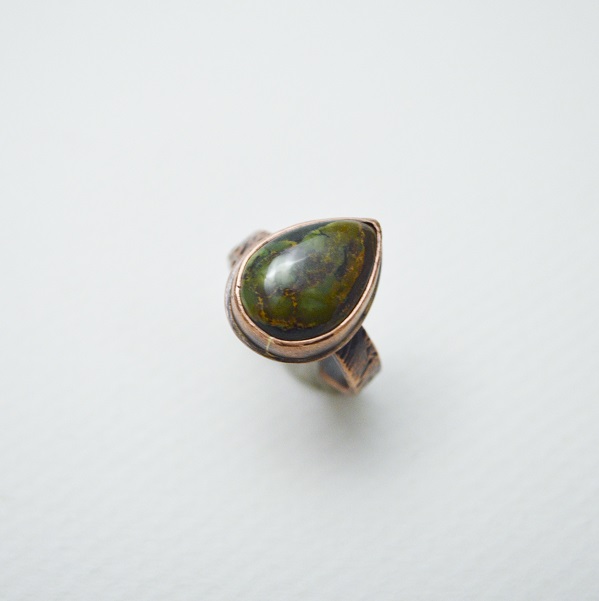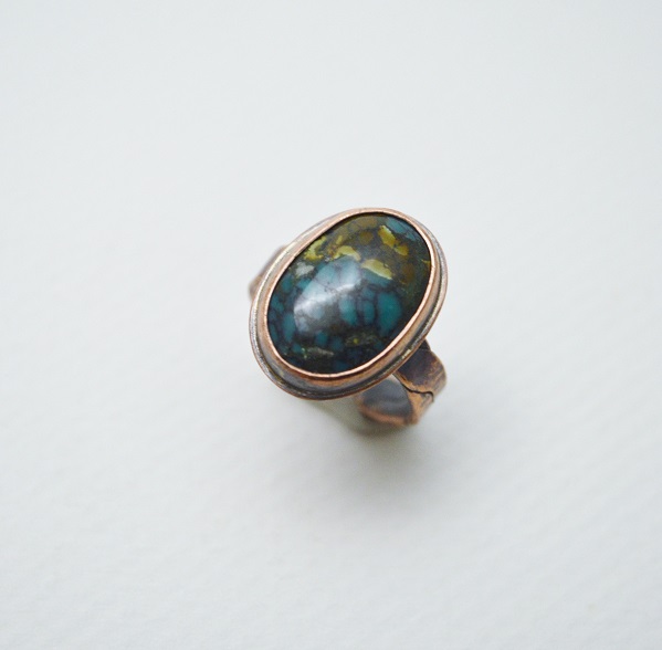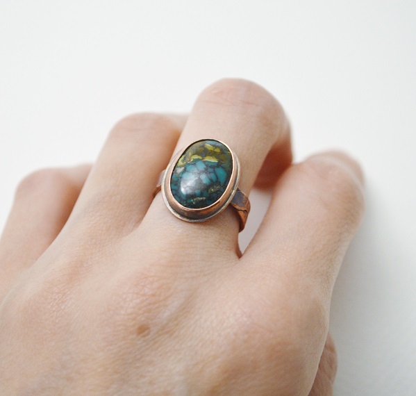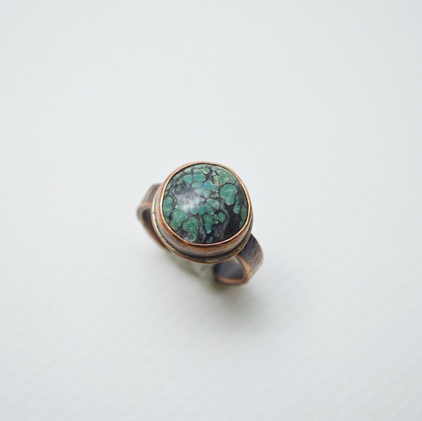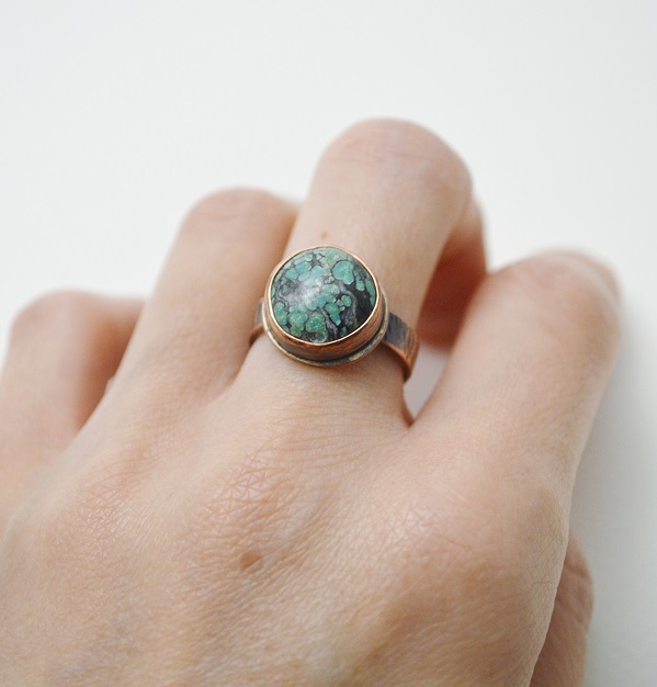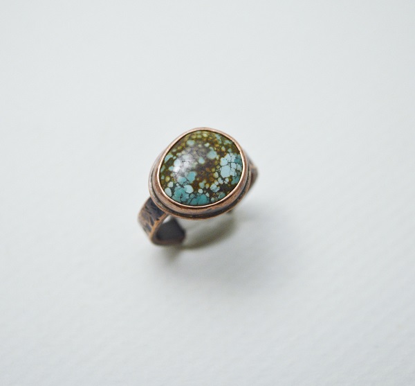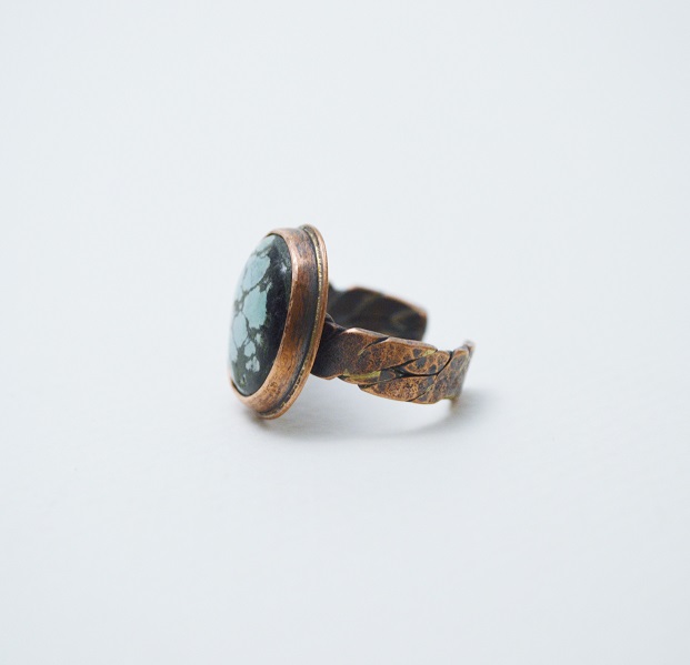 [簡單系列-綠松石(土耳其石)‧硫化鍛敲紅銅開放戒圍戒指‧no 4 Simple Series-Turquoise‧Oxidized forged Copper Open Ring‧no 4]