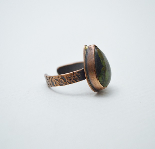 [簡單系列-綠松石(土耳其石)‧硫化鍛敲紅銅開放戒圍戒指‧no 3 Simple Series-Turquoise‧Oxidized forged Copper Open Ring‧no 3]