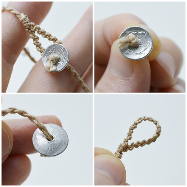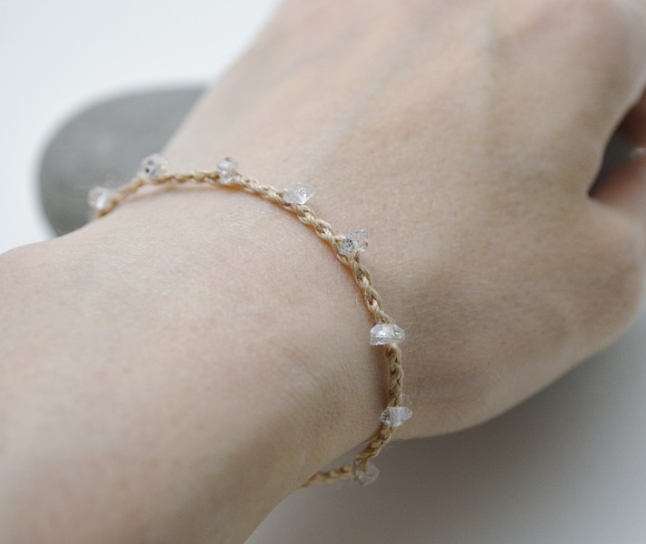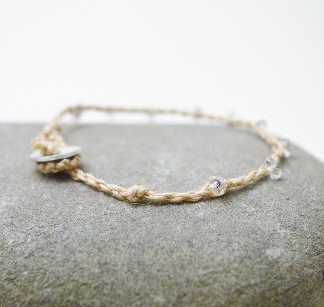 -淺茶色麻繩 Hemp Cord, 鑽石水晶 Diamond Quartz, 手工鍛敲純錫扣 Handmade Tin Button-Clasp