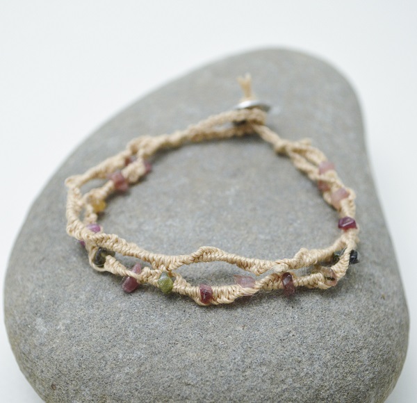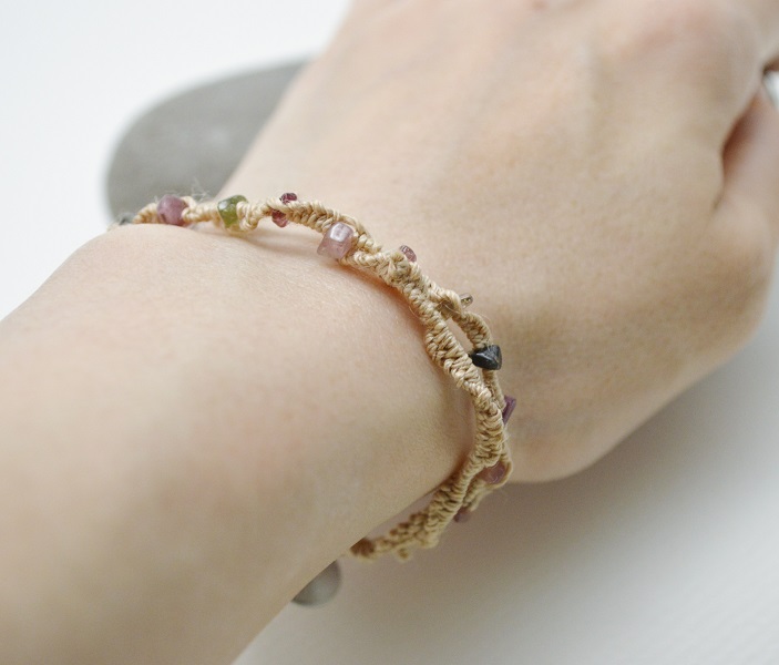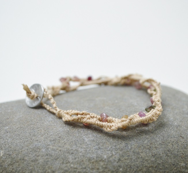 [編繩系列- 淺茶色3‧多色碧璽‧手工純錫扣‧麻繩編織手環 Hemp Series‧light brown3‧Mix Colors Tourmaline‧Handmade Tin Button-Clasp‧hemp bracelet]