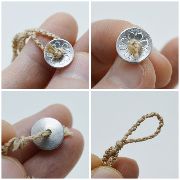 [編繩系列- 淺茶色1‧鑽石水晶‧手工純錫刻花扣‧麻繩編織手環 Hemp Series‧light brown1‧Diamond Quartz‧Handmade Tin Button-Clasp‧hemp bracelet]