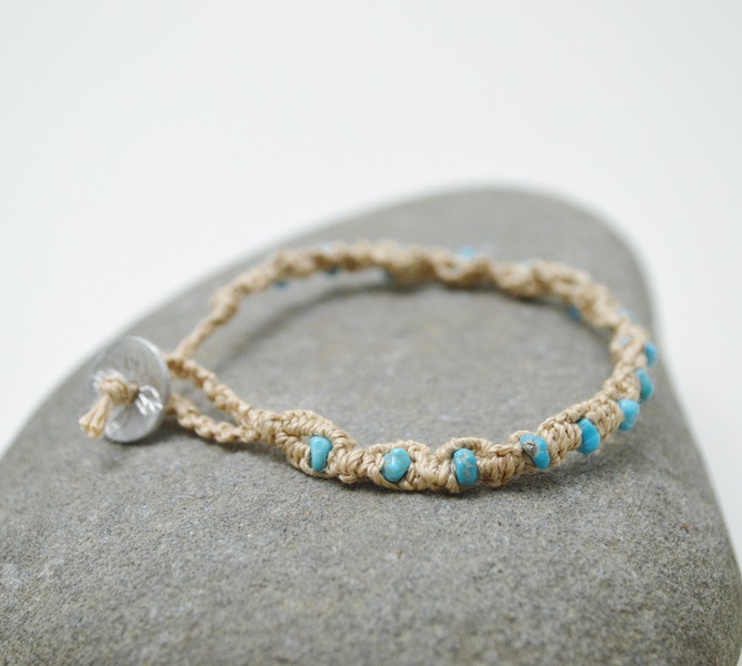 [編繩系列- 淺茶色2‧綠松石(土耳其石)‧手工純錫扣‧麻繩編織手環 Hemp Series‧light brown2‧Turquoise‧Handmade Tin Button-Clasp‧hemp bracelet]