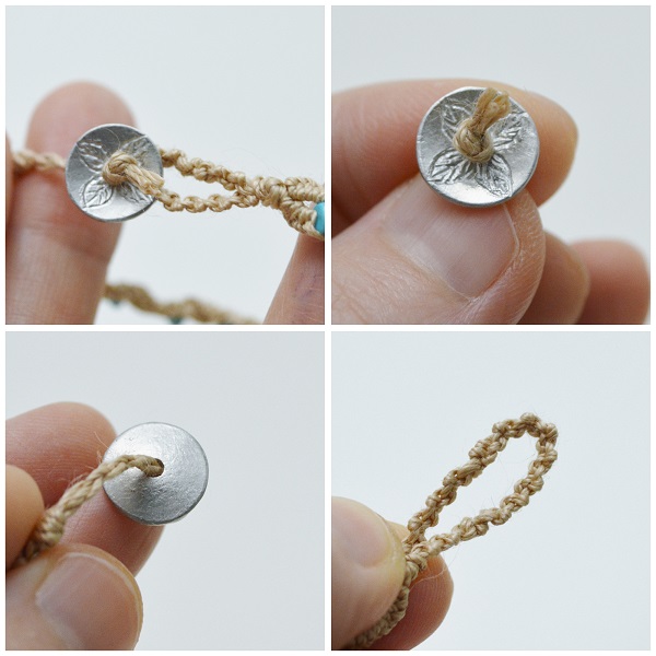 [編繩系列- 淺茶色1‧綠松石(土耳其石)‧手工純錫刻花扣‧麻繩編織手環 Hemp Series‧light brown1‧Turquoise‧Handmade Tin Button-Clasp‧hemp bracelet]