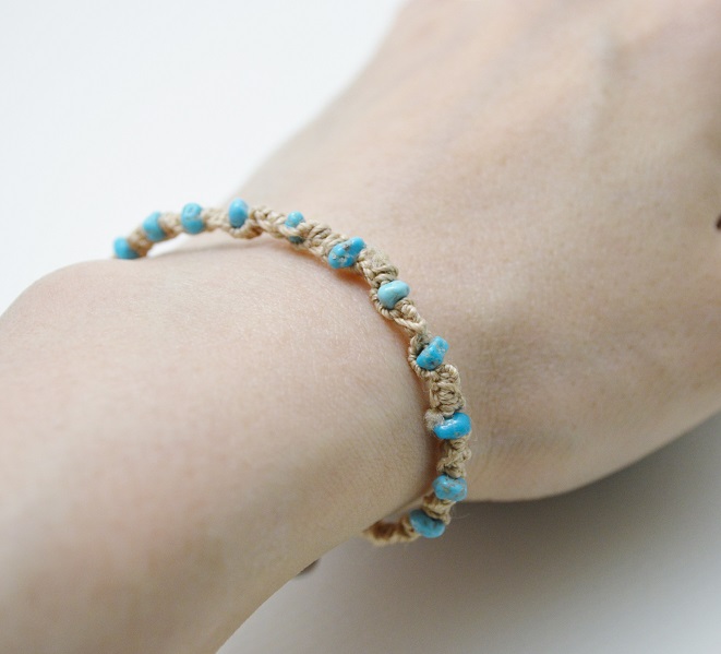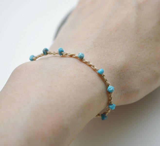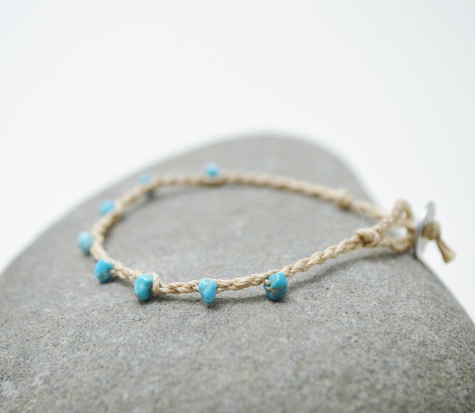 -淺茶色麻繩 Hemp Cord, 綠松石(土耳其石) Turquoise, 手工鍛敲純錫扣 Handmade Tin Button-Clasp