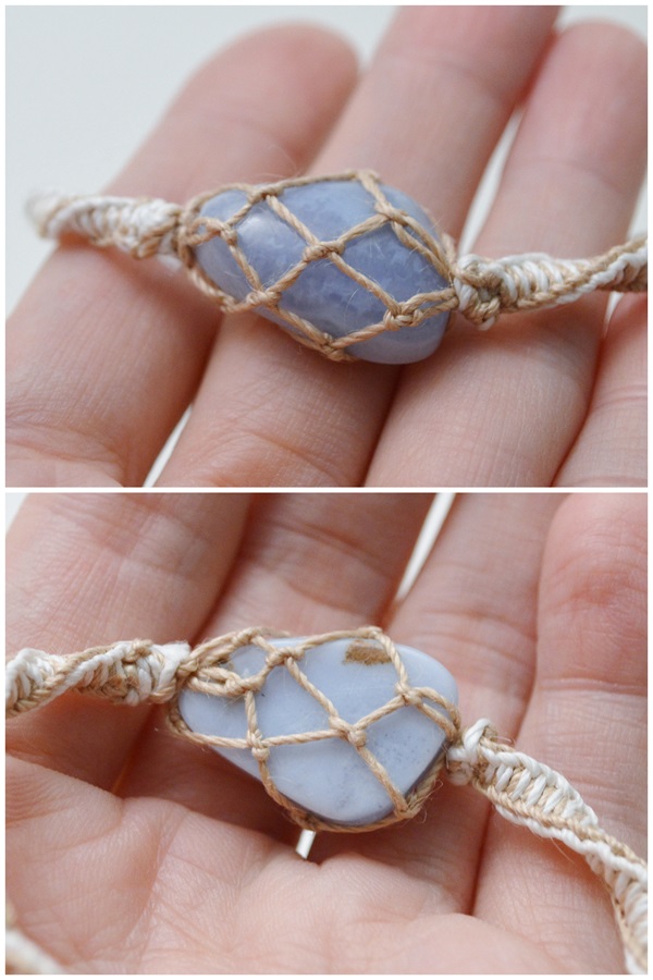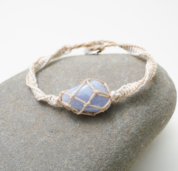 -淺茶色+白色麻繩 Hemp Cord, 藍紋瑪瑙 Blue Lace Agate, 手工鎚紋純錫扣 Handmade Tin Button-Clasp