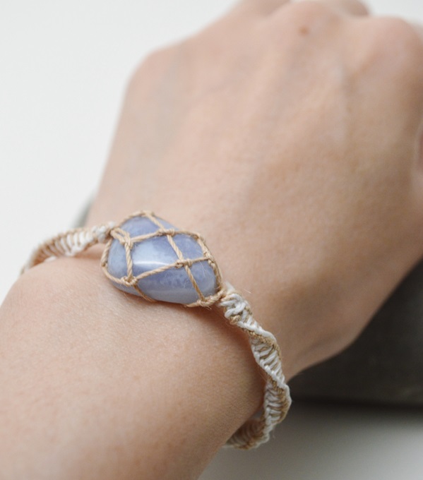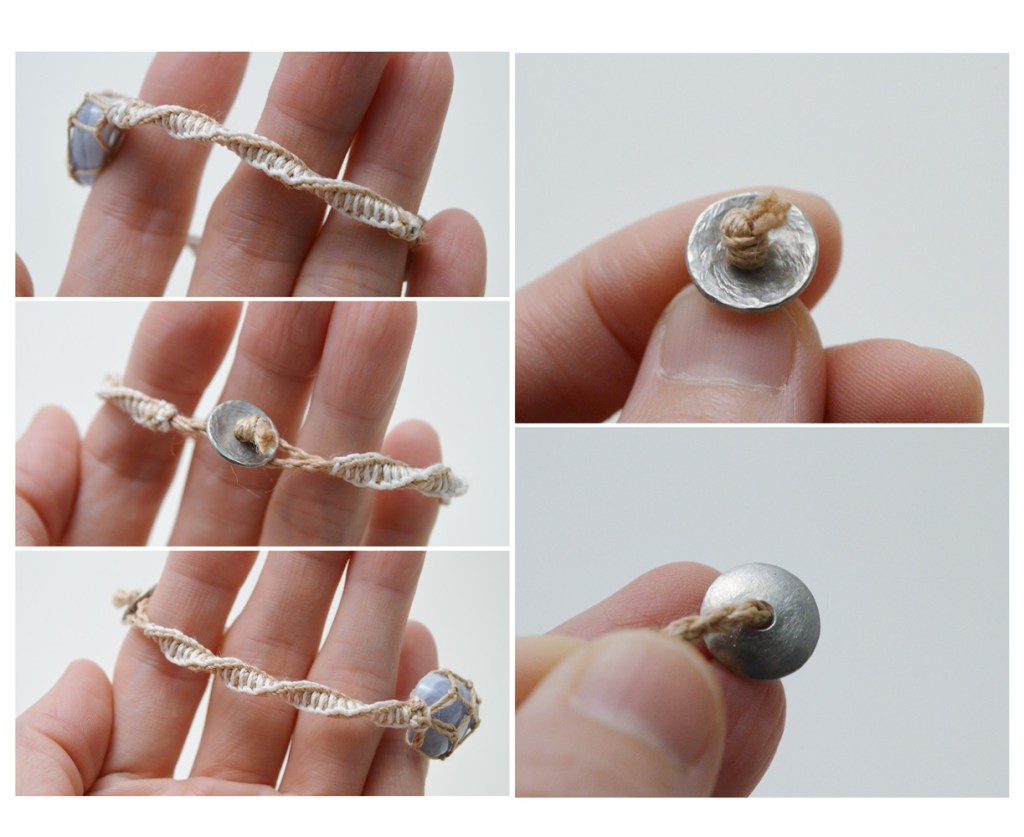 [編繩系列- 雙色1‧藍紋瑪瑙‧手工純錫扣‧麻繩編織手環 Hemp Series‧Two colors1‧Blue Lace Agate‧Handmade Tin Button-Clasp‧hemp bracelet]
