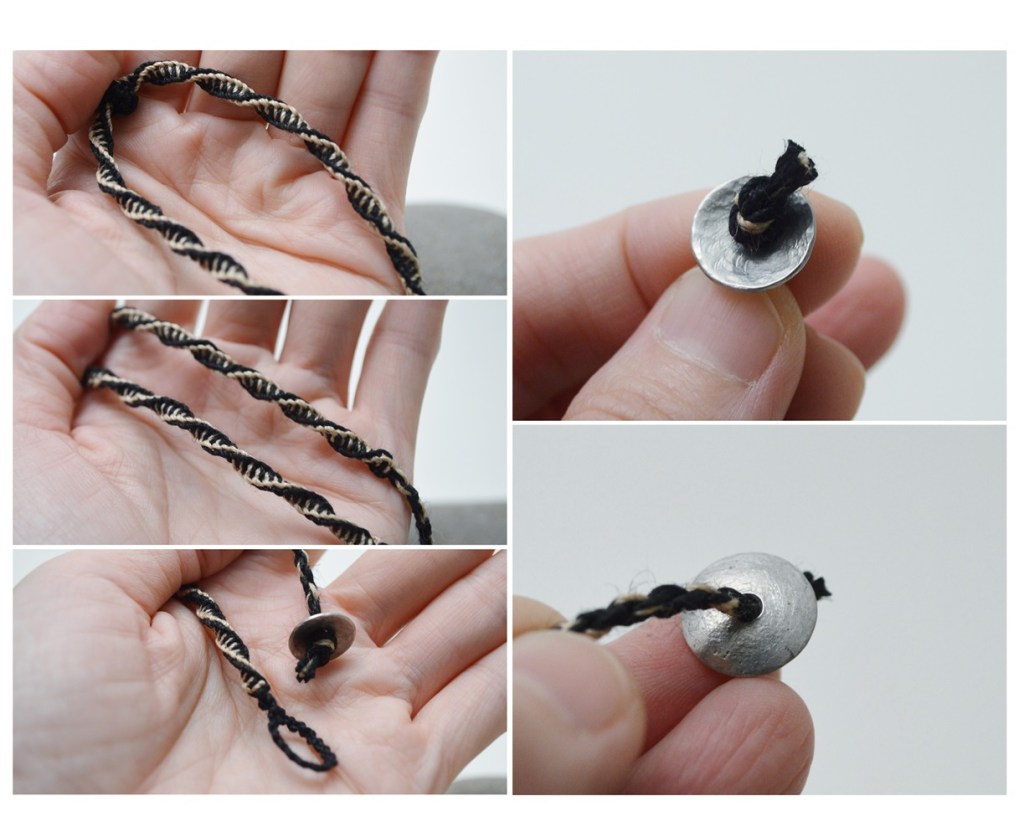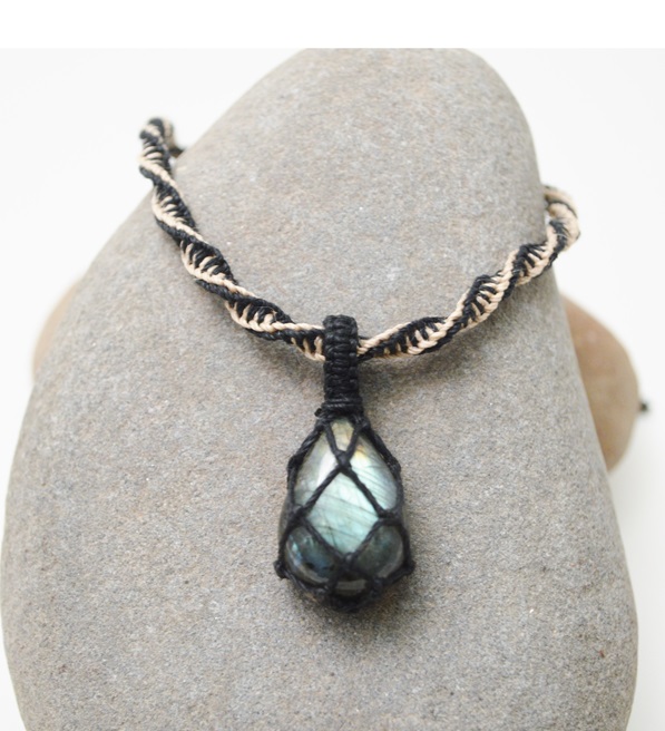 -淺茶色+黑色麻繩 Hemp Cord, 拉長石 Labradorite, 手工鎚紋純錫扣 Handmade Tin Button-Clasp