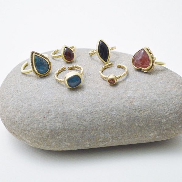 [簡單系列-磷灰石‧黃銅開放戒圍戒指‧Type1 Simple Series-Apatite‧Brass Open Ring‧Type1]