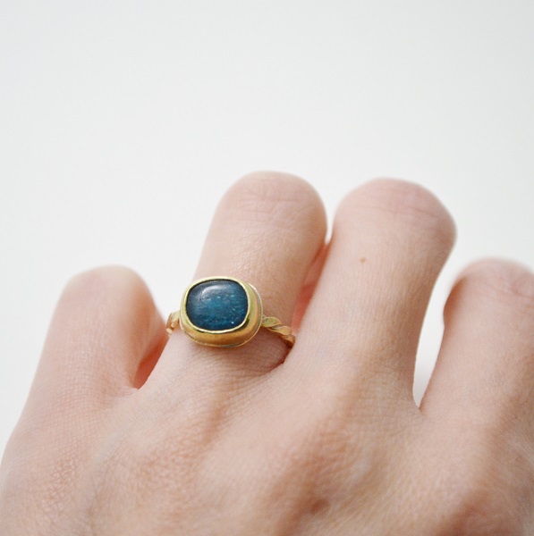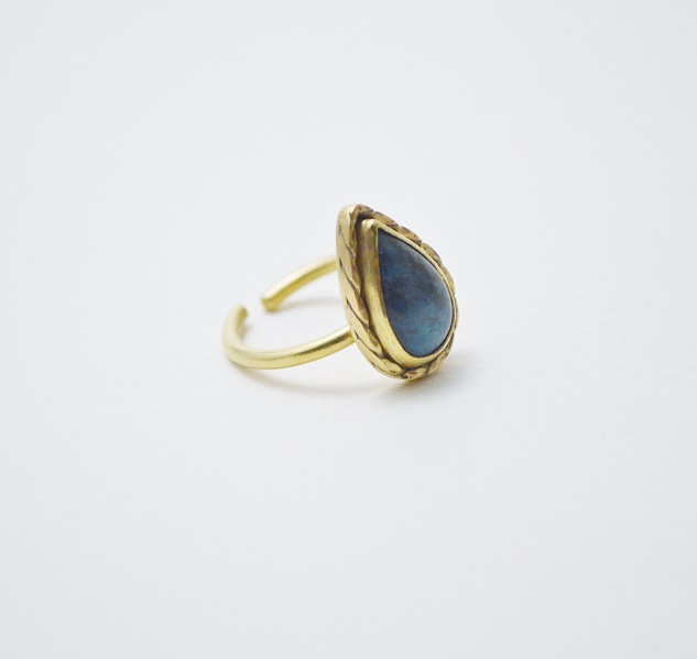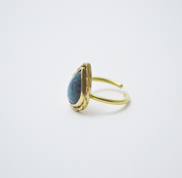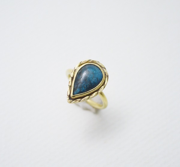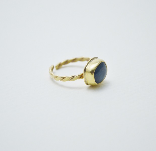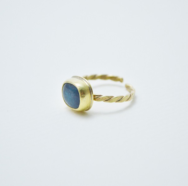 [簡單系列-磷灰石‧黃銅開放戒圍戒指‧Type2 Simple Series-Apatite‧Brass flat twisted band Open Ring‧Type2]
