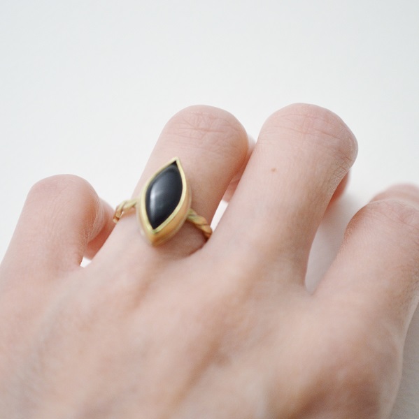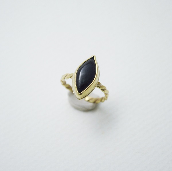 [簡單系列-黑碧璽‧黃銅開放戒圍戒指‧Type1 Simple Series-Black Tourmaline‧Brass flat twisted band Open Ring‧Type1]
