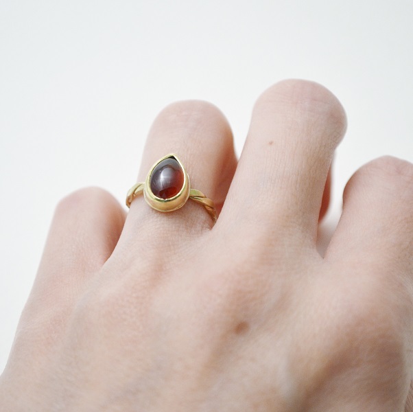 [簡單系列-鈣鋁榴石(肉桂石)‧黃銅開放戒圍戒指‧Type1 Simple Series-Hessonite‧Brass flat twisted band Open Ring‧Type1]