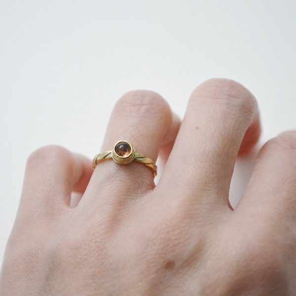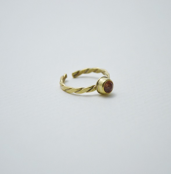 [簡單系列-奧勒岡太陽石‧黃銅開放戒圍戒指‧Type1 Simple Series-Oregon Sunstone‧Brass flat twisted band Open Ring‧Type1]