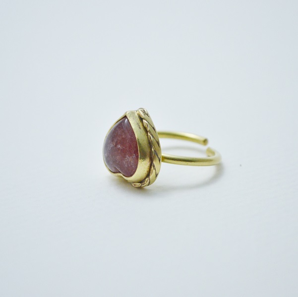 [簡單系列-草莓晶‧黃銅開放戒圍戒指‧Type1 Simple Series-Strawberry Quartz‧Brass Open Ring‧Type1]