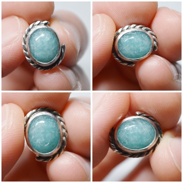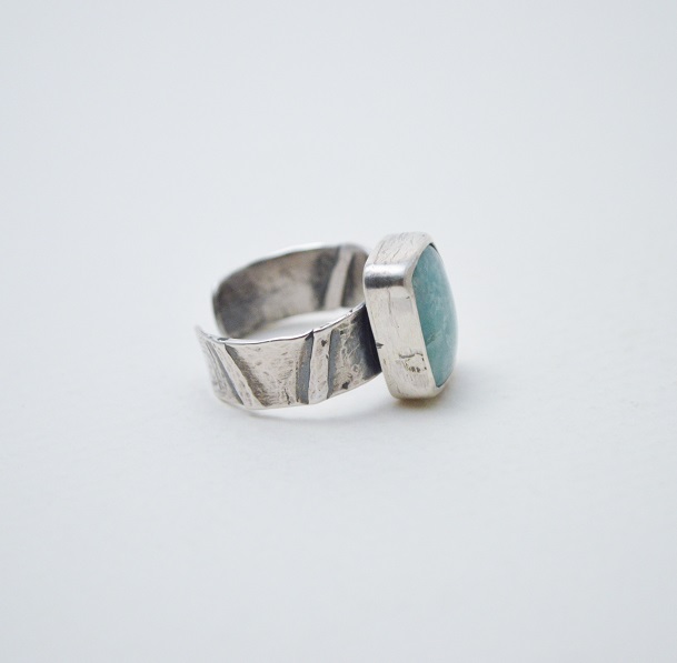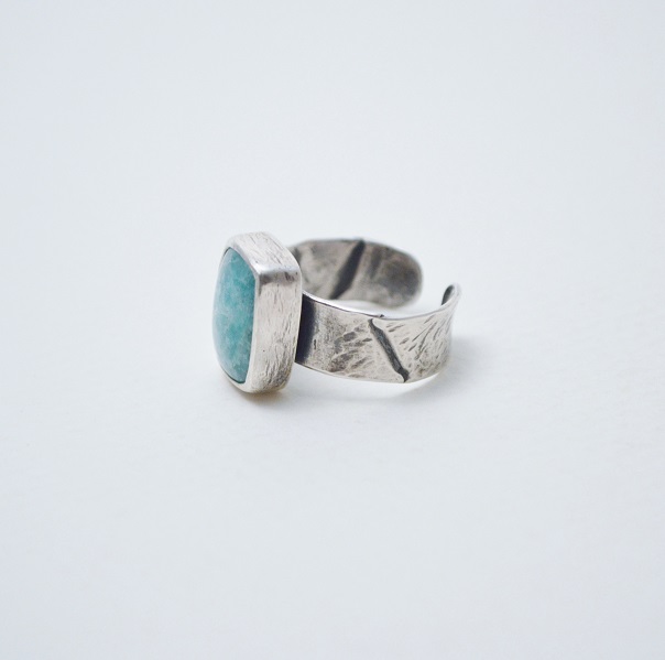 [折疊系列-26號之一‧綠色亞馬遜石‧硫化純銀開放戒圍戒指 fold no.26-1‧Green Amazonite‧Oxidized Silver Open Ring]