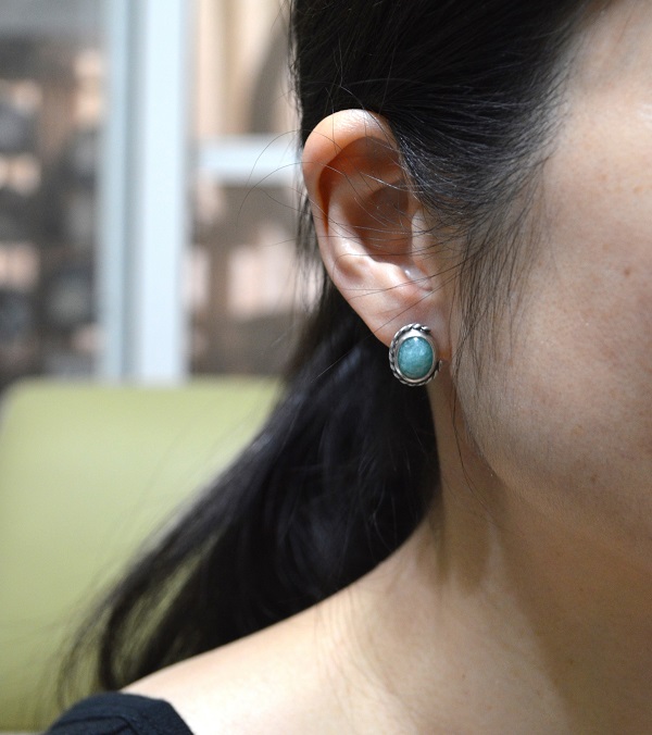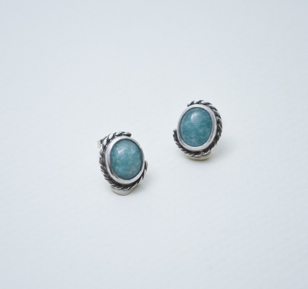 [段落系列-綠色亞馬遜石‧硫化純銀耳釘(一對) Section‧Green Amazonite-Oxidized Silver Stud Earrings (pair)]