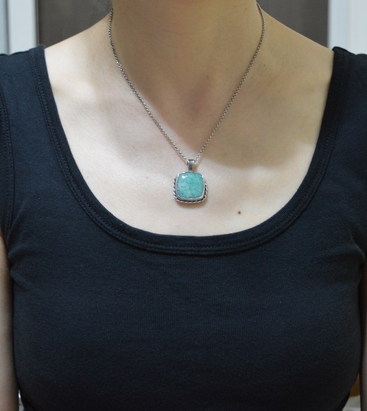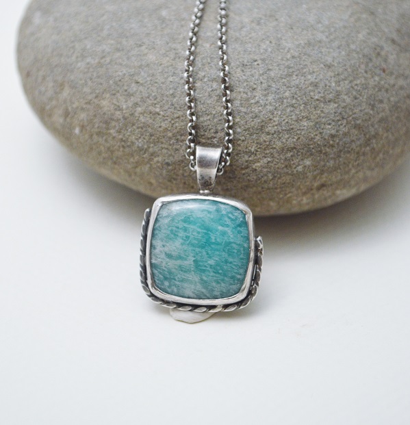 – 硫化純銀墜 Oxidized Silver Pendant, 綠色亞馬遜石 Green Amazonite, 硫化純銀鍊 Oxidized Silver Chain